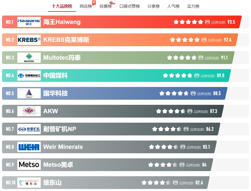 Multotec瑪泰、中國(guó)煤科、國(guó)華科技、AKW、耐普礦機(jī)NP、Weir Minerals、Metso美卓、維東山等,
